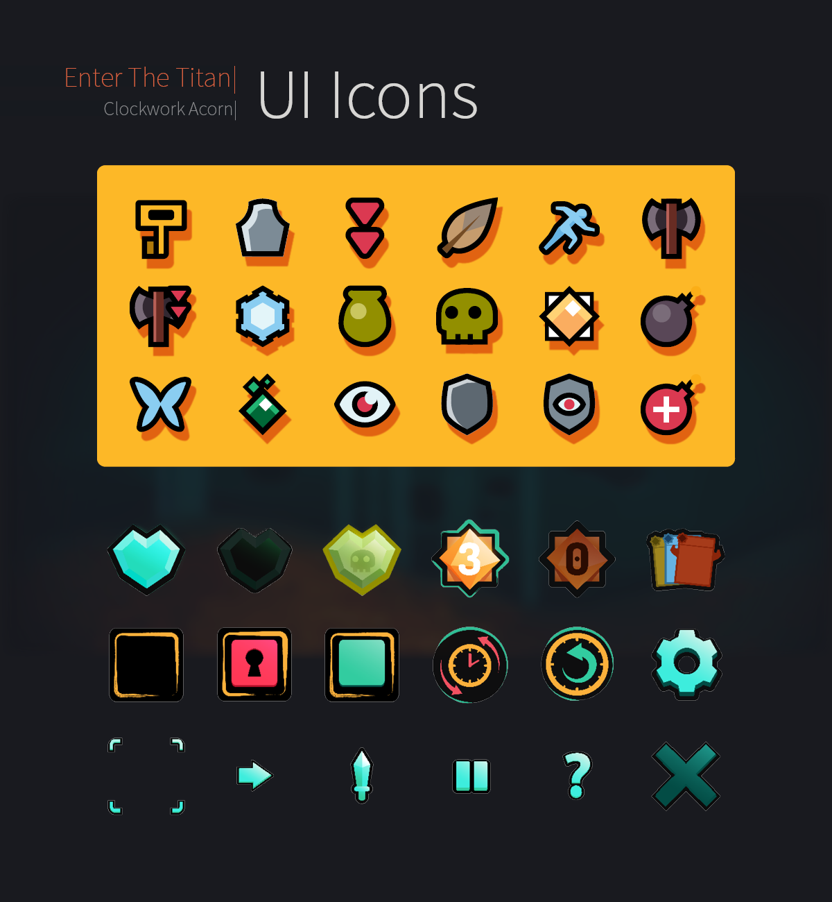 What started out as a hunt for some icons for a project turned into me starting assembly on my own set. With an emphasis on simplicity and catering towards RPG games in particular, the full (and ever growing) set currently consists of over 120 icons, meticulously and lovingly crafted.